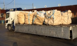 今日は機械屑の回収でした。こんな感じでフレコンに入っている物を積み込みしました。結構重量がありましたよ。