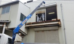 重量物のユニック車作業です。手作業での積み込みができない場合など、とても便利に積み込みができます。