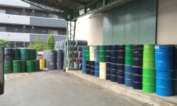 最近の猛暑、荷卸しも結構汗だくです。物流総合企業様、中古ドラム缶60本納品完了です。