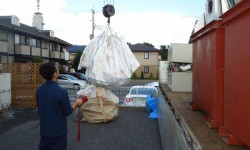 関東も梅雨入り、廃棄物回収に追われる日々画像ユニック車で廃棄物引き上げ作業中!!なかなか時間かかりますぞ